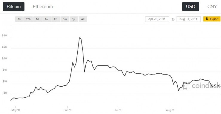 如果比特币在 30 天内价格翻倍,就会被视为“泡沫期”。近一个月,它的价格增长了 215%,目前已经处于“泡沫期”。并且,之前几次暴涨之后的回落幅度是值得参考的数据。目前难以确定这个规律是否会在本轮重现。但是,从今年 4 月至今接近 400%的升幅来看,价格快速回落的可能性正在增加。